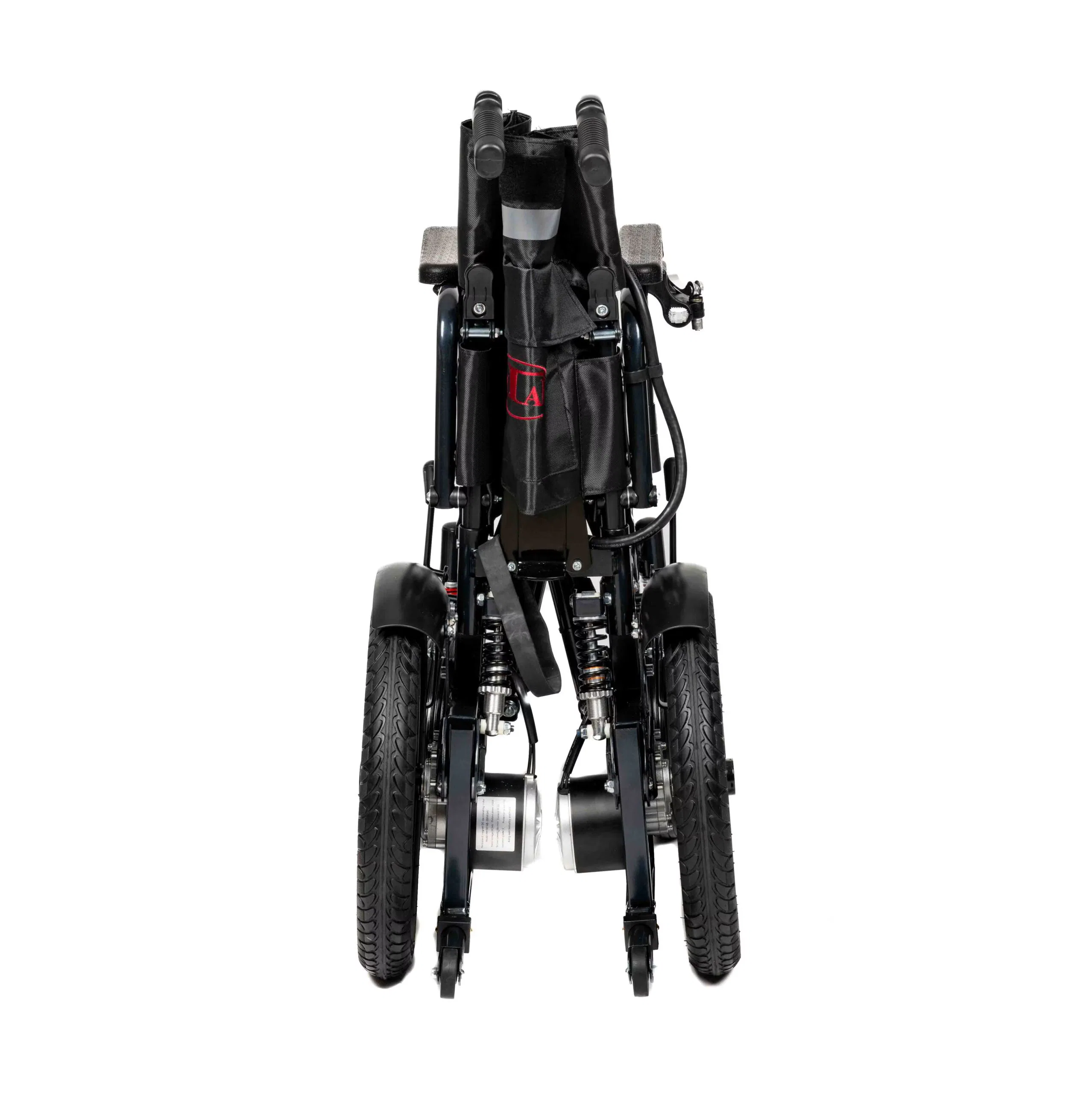 Solidna stalowa rama zapewnia stabilność i trwałość, a konstrukcja składana ułatwia transport oraz przechowywanie. Po złożeniu wózek zajmuje znacznie mniej miejsca, co jest dużym plusem przy przewożeniu autem lub przechowywaniu w mieszkaniu. Komfort poprawiają m.in. odchylane oparcie i podłokietniki, a pneumatyczne koła tylne amortyzują nierówności na trasie.