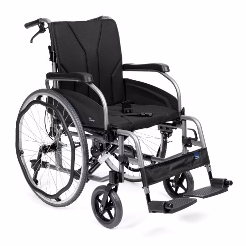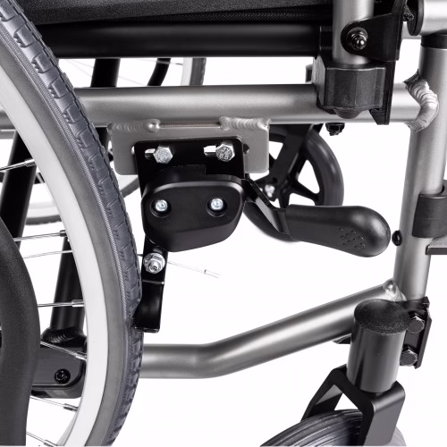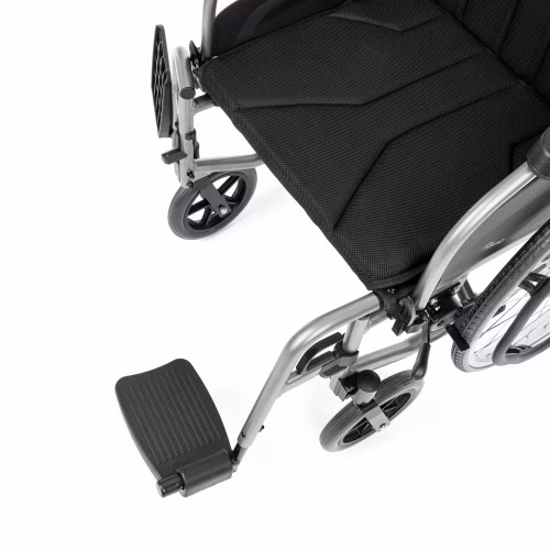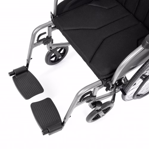 - Funkcjonalne detale: Uchylne podłokietniki ułatwiają przesiadanie się, a odchylane i całkowicie zdejmowane podnóżki zwiększają codzienną wygodę.