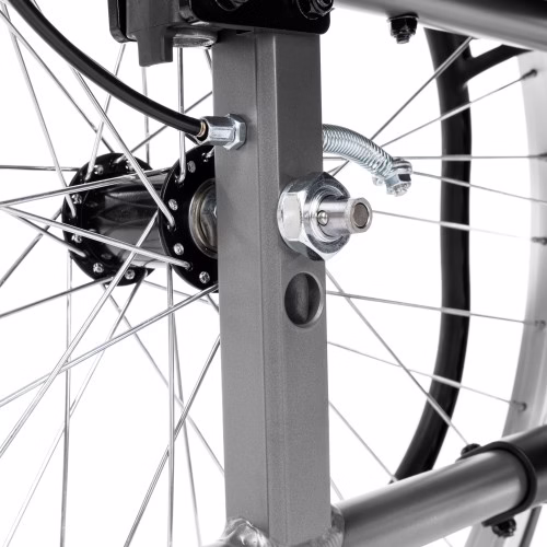 - Koła tylne: 24″, do wyboru pompowane lub pełne (wyposażone w szybkozłączki)