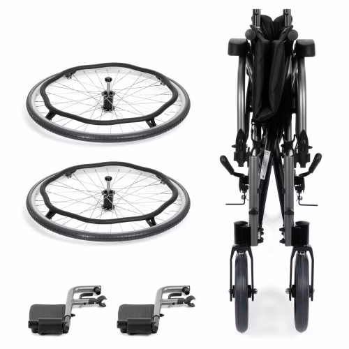 - Bezpieczeństwo w standardzie: W zestawie znajduje się pas biodrowy dla użytkownika oraz taśma zabezpieczająca łydki. Dostępne są również kółka antywywrotne (jako akcesorium dodatkowe).