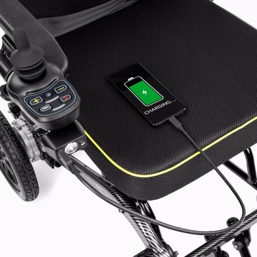 - Wyjmowany, bezobsługowy akumulator: Baterię możesz łatwo odpiąć i naładować w dowolnym, wygodnym dla Ciebie miejscu, bez konieczności podjeżdżania całym wózkiem do gniazdka.