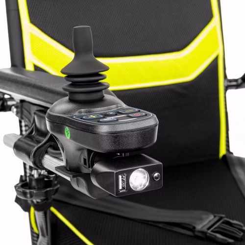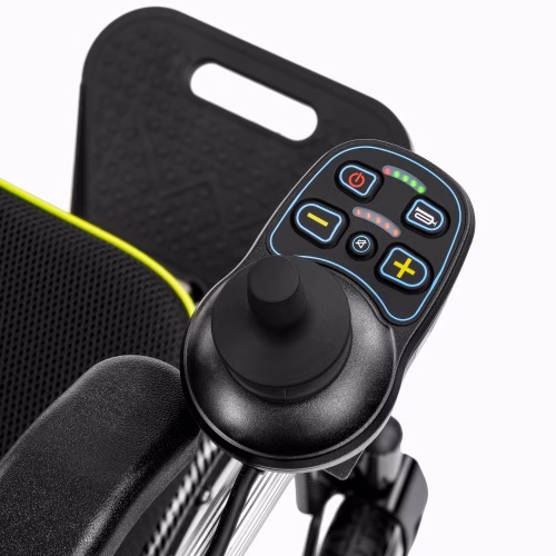 - Zaawansowany panel sterowania: Precyzyjny joystick, podświetlane przyciski, regulacja prędkości i czytelny wskaźnik baterii dają Ci pełną kontrolę nad wózkiem. Panel wyposażono również w klakson oraz przycisk wyciszający sygnały dźwiękowe.